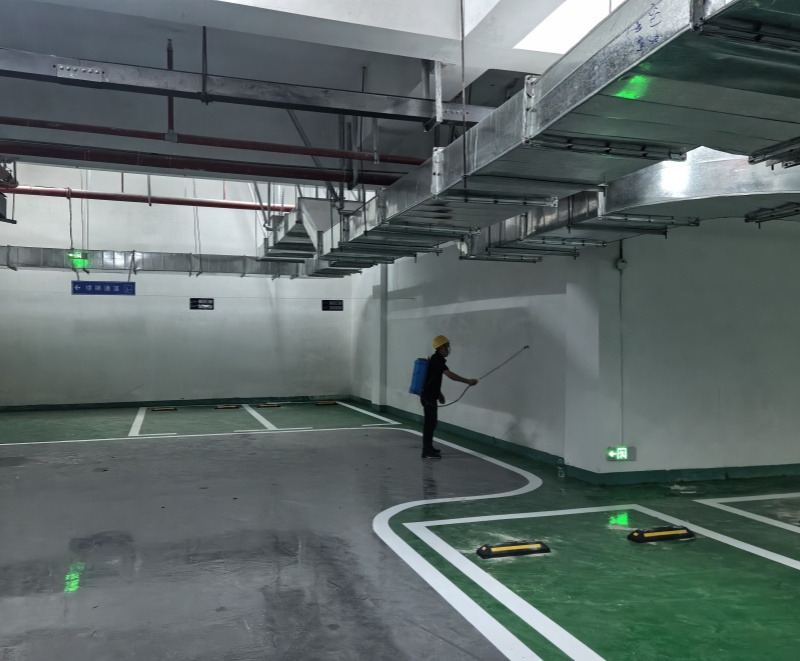 2024年8月23日下午15點(diǎn)于吉安市濱江學(xué)校地下停車(chē)場(chǎng)所除甲醛施工作業(yè)。